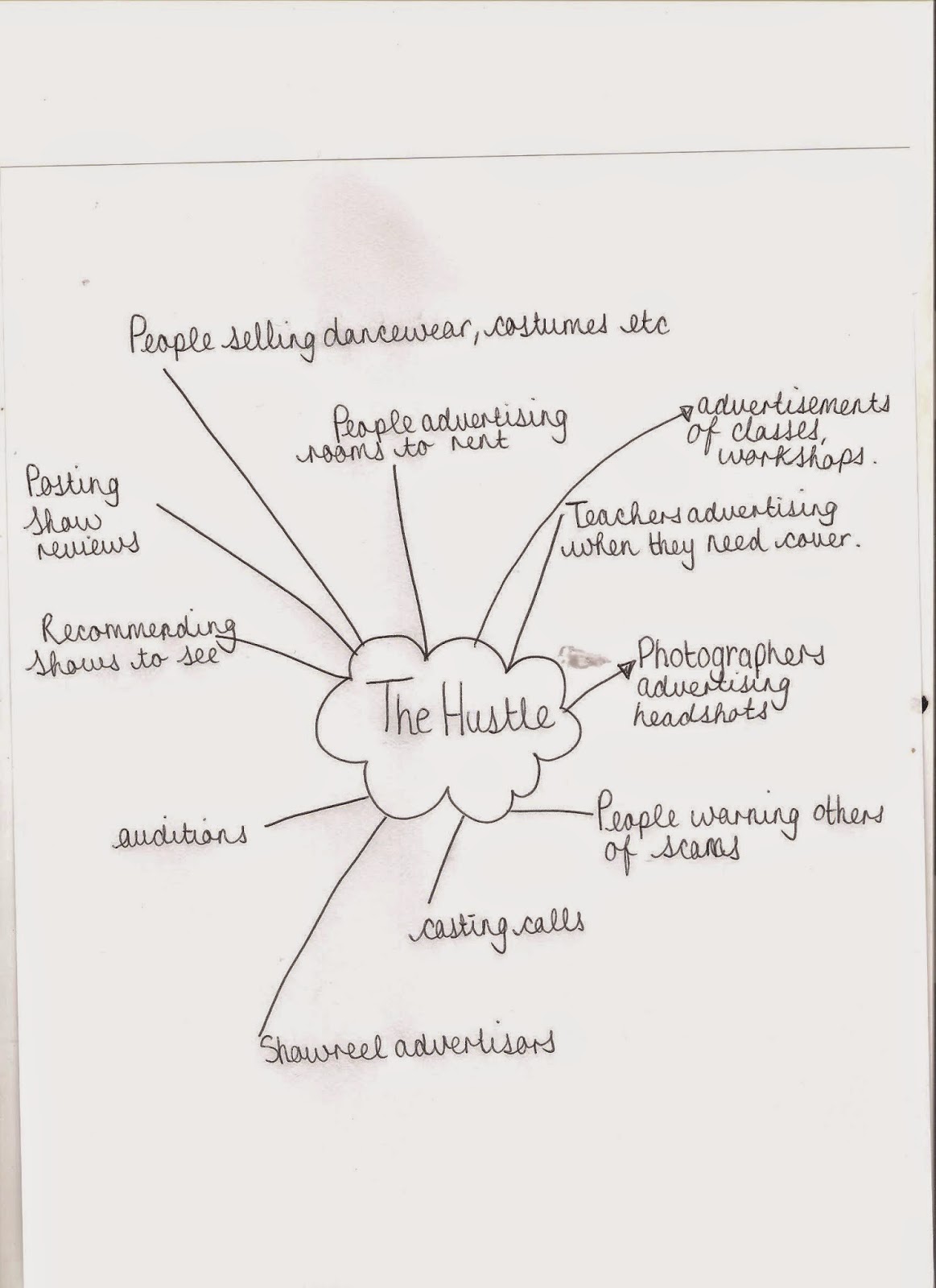 Spider diagram showing some of the reasons how people use 'The Hustle':